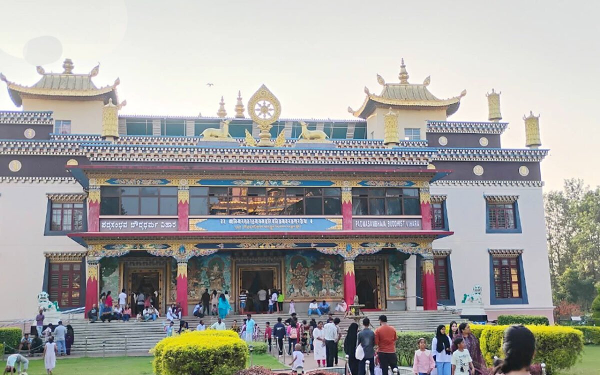 Start your journey early from Mysore and head toward Bylakuppe, home to the Namdroling Monastery, also known as the Golden Temple. One of the largest Tibetan settlements in South India, this peaceful monastery is adorned with golden Buddha statues, intricate murals, and prayer wheels, offering a truly spiritual experience.