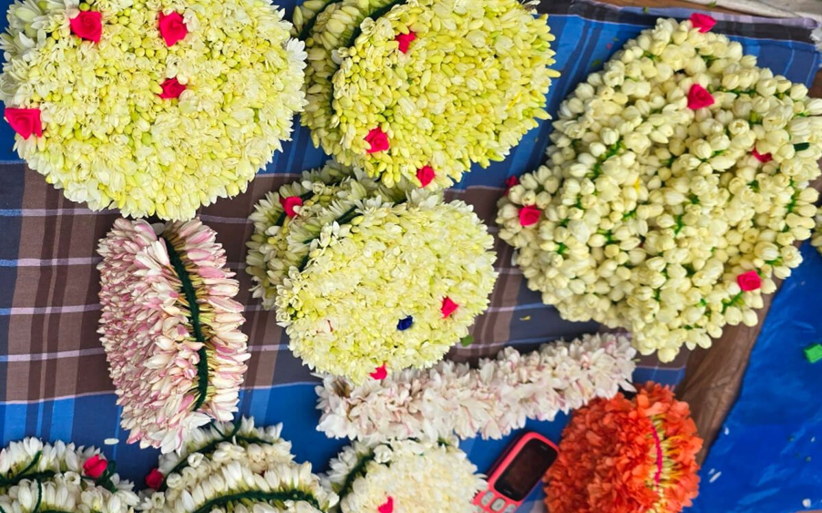 Experience the vibrant traditions of Madurai through a guided cultural journey that combines a local flower market visit with a hands-on garland making experience.